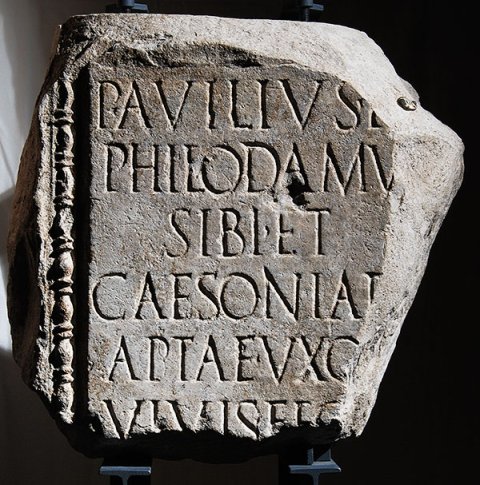 - P(ublius) Avilius P(ubli) [---] / Philodamu[s ---] / sibi et / Caesoniae [--] / Aptae uxo[ri ---] / vivis fec[erunt]