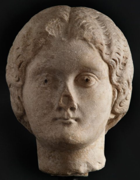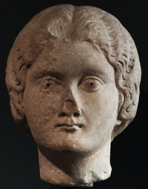 - Frauenporträt mit Mittelscheitel und fein gesträhntem gewellten Haar