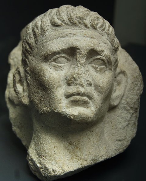 - Unterlebensgroßes Porträt eines bartlosen Mannes mit Stirnfalten