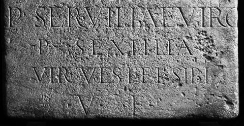 - Lateinische Inschrift unterhalb des Reliefs moderne Fälschung.