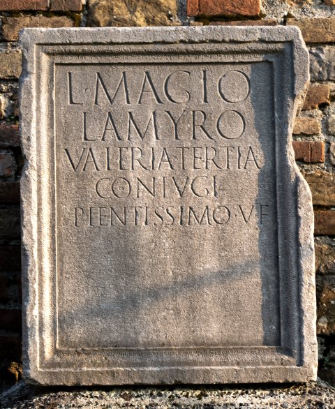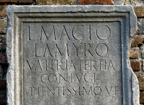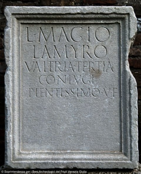 - L(ucio) Macio / Lamyro / Valeria Tertia / coniugi / pientissimi v(iva) f(ecit)