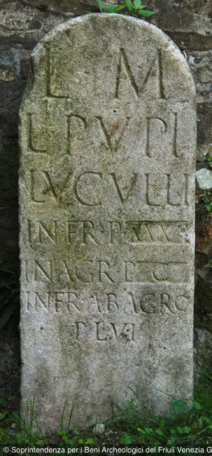 - L(ocus) m(onumenti) / L(uci) Pupi / Luculli / in fr(onte) p(edes) XXXVI / in agr(o) p(edes) C / in f(rontem) ab agro / p(edes) LVI