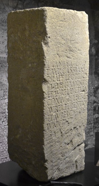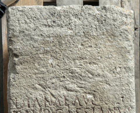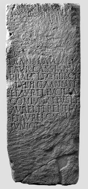 - Dianae Aug(ustae) / P(ublius) Aur(elius) Cassianus / praef(ectus) leg(ionis) IIII Scy(thicae) / et leg(ionis) XIIII G(eminae) Ant(oninianae) / et Aurel(ia) Lucilla / coniunx eius et / Aurelia Terentia / et Aurel(ius) Cassian(us) / Iunior f(ilii) // [Dia]nae / [et A]pollini / Aug(usto) sac(rum) / Val[---]