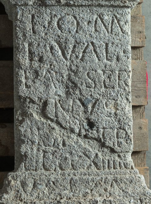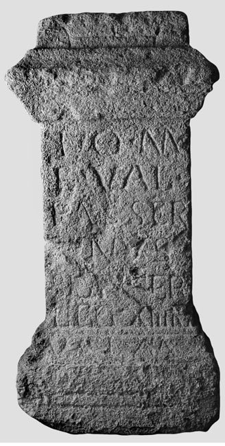 - I(ovi) O(ptimo) M(aximo) / L(ucius) Val(erius) / Passer/ianus / signifer / leg(ionis) XIIII G(eminae) / v(otum) s(olvit) l(ibens) [l(aetus)] m(erito)