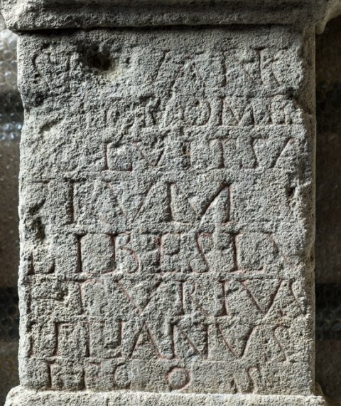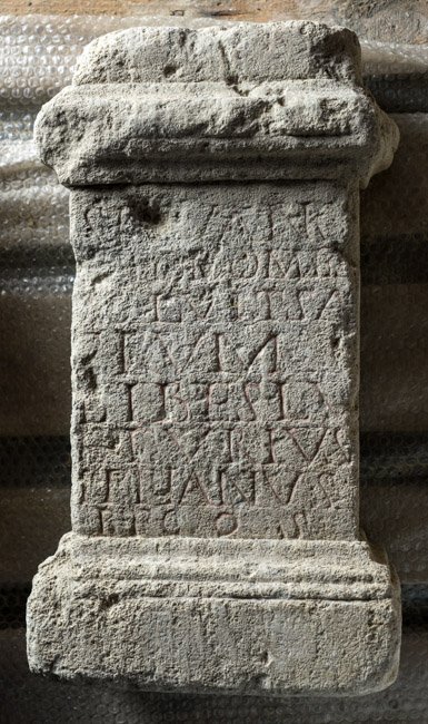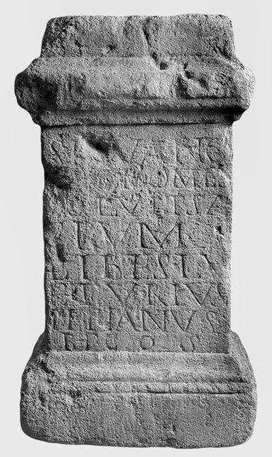 - Silvano / [d]eo Domes(tico) [s]olvit sa/crum / libe(n)s L(ucius) V/eturius / Titianus / b(ene)f(iciarius) co(n)s(ularis)