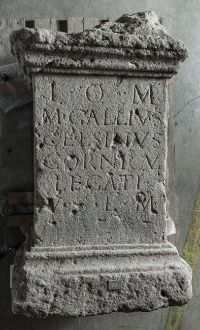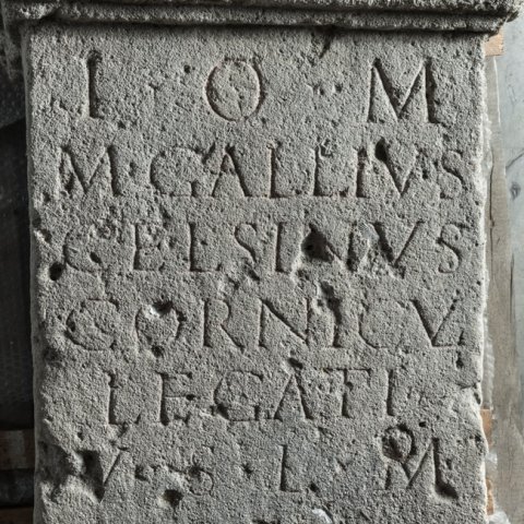 - I(ovi) O(ptimo) M(aximo) / M(arcus) Gallius / Celsinus / cornicul(arius) / legati / v(otum) s(olvit) l(ibens) m(erito)