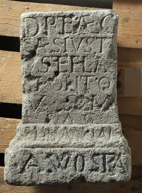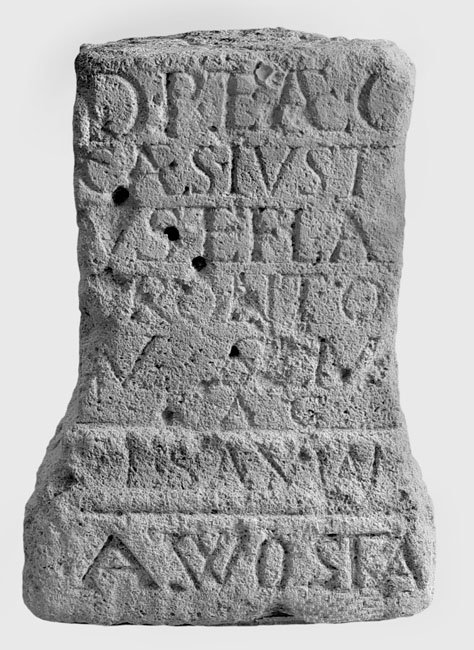 - D(is) P(atris) et (H)ae(re)c(urae)(!) / Caes(ius) Iust/us et Fla(vius) / Fronto / v(otum) s(olverunt) l(ibentes) m(erito) / sac(erdote) // Fl(avio) Salviano