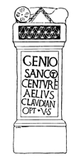 - Genio / sancto / centuri(a)e / Aelius / Claudian(us) / opt(io) v(otum) s(olvit)