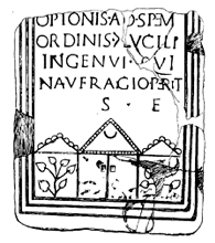- ---] / opt[i]onis ad spem / ordinis |(centuria) Lucili / Ingenui qui / naufragio peri(i)t / s(itus) e(st)