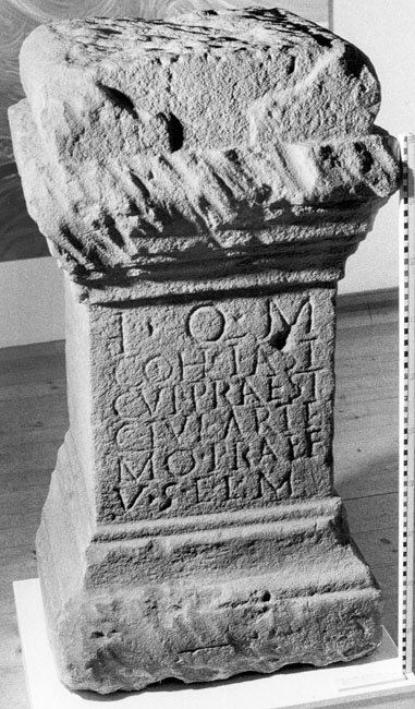 - I(ovi) O(ptimo) M(aximo) / coh(ors) I Ast(urum) / cui prae(e)st / C(aius) Iul(ius) Arte/mo praef(ectus) / v(otum) s(olvit) l(ibens) l(aeta) m(erito)