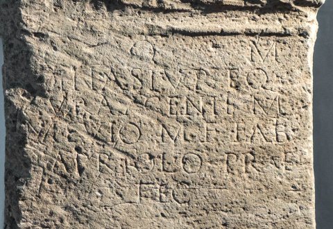 - I(ovi) O(ptimo) M(aximo) / coh(ors) I Astur(um) eq(uitata) / cura(m) agente M(arco) / Mevio M(arci) f(ilio) Fab(ia) / [C]apriolo praef(ecto) / fec(it)