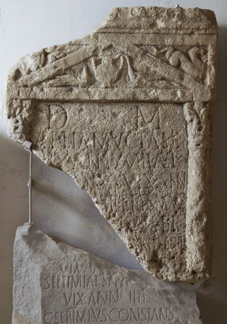 - D(is) M(anibus) / Aelia Muciane / vix(it) ann(is) XXVII Ael(ius) / [---]orus vix(it) ann(is) / [---] Firmus / Ael[---