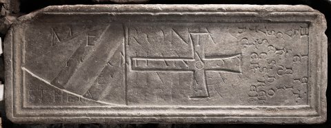 - Inschrift tlw. abgearbeitet, im 13.Jh. als Grabstein wiederverwendet