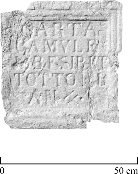 - Q(u)arta / Camul(a)e / l(iberta) f(ecit) sib(i) et / Totto fil(io) / an(norum) XX