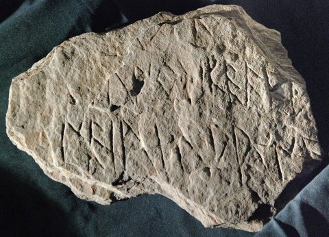 - Schieferplatte mit venetischer Inschrift (Reste von Personennamen)