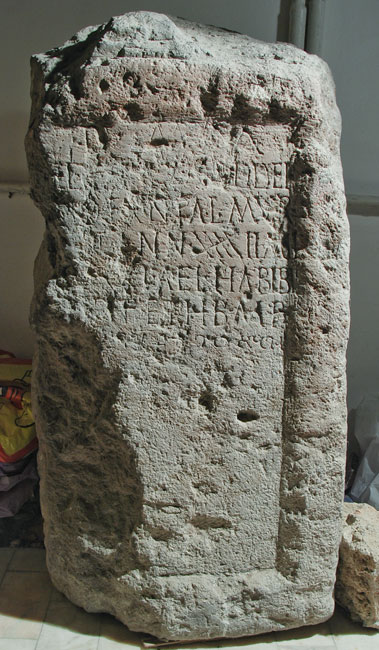 - D(is) M(anibus) / Ael(ius) Guras Iiddei / [op]tio ex n(umero) Palmur(enorum!) / [vi]xit ann(os) XXXXII mil(itavit) / [an]n(os) XXI Ael(ius) Habibis / [pon]tif(ex) et h(eres) b(ene) m(erenti) p(osuit)