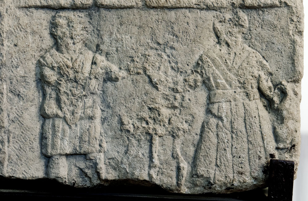 15085 Wand mit drei Relieffeldern (Reiter, Pflüger und Totenopfer)