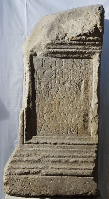 - I(ovi) O(ptimo) M(aximo) / Conserva/tori T(itus) Sc/ruius Vita/lis trib(unus) coh(ortis) / III Camp(estris) / v(otum) s(olvit) l(ibens) m(erito)
