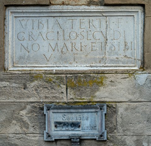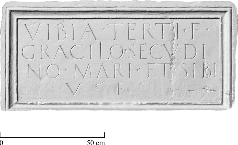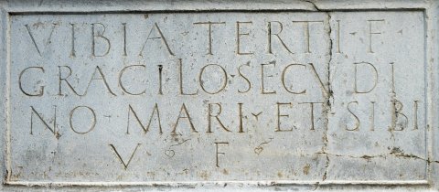 - Vibia Terti(i) f(ilia) / Gracilio Secu(n)di/no mari(to) et sibi / v(iva) f(ecit)