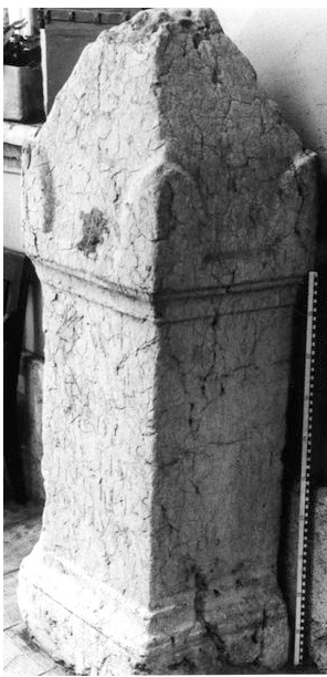 - Pyramidenförmiger Aufsatz zwischen Eckakroteren.
