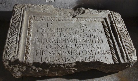 - D(is) M(anibus) / tu qui reciprocam se/mitam voto subis / morare paulum vitam / cognoscis tuam / hic sumus expositi mor/talia munera functi / [---