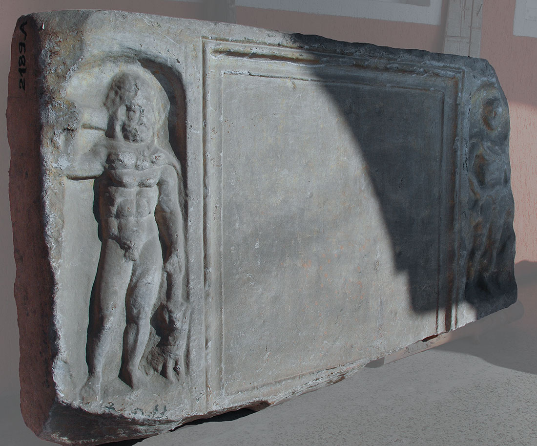 15157 Schrifttafel zwischen Hercules- und Mercur-Reliefs