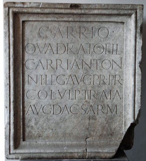 - C(aio) Arrio / Quadrato fil(io) / C(ai) Arri Antoni/ni leg(ato) Aug(usti) pr(o) pr(aetore) / col(onia) Ulp(ia) Traia(na) / Aug(usta) Dac(ica) Sarm(izegetusa)