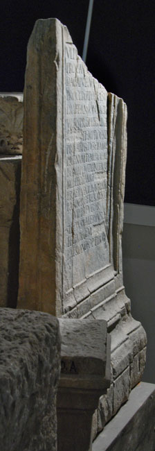 - Ulpio [--- v(iro) e(gregio)?] / proc(uratori) Augg(ustorum) pr[ovinc(iae)?] / Dac(iae) Apul(ensis) a(genti) v(ice) p(raesidis) item / proc(uratori) prov(inciae) Porol(issensis) sub/praef(ecto) annon(ae) sacrae / urbis praep(osito) leg(ionis) VII gem(inae) / [[Philip(pianae)]] item proc(uratori) stat(ionis) / privat(ae) per Tusciam et / Picenum item proc(uratori) ad / bona Plautiani trib(uno) / mil(itum) leg(ionis) II Part(hicae) [[Philip(pianae)]] / praep(osito) vexill(ationis) auxiliar(iorum) / Pann(oniae) infer(ioris) praef(ecto) coh(ortis) / VII Breucor(um) / Siscius Valerius |(centurio) / leg(ionis) XIII gem(inae) [[Philip(pianae)]] / patrono optimo