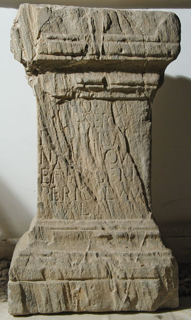 - [I(ovi)] O(ptimo) M(aximo) / C[on]serv[a]t(ori) / P(ublius)(?) [---]is Anto/ni[nus] quo[d] / eff[u]gerit / periculum / v(otum) l(ibens) s(olvit)