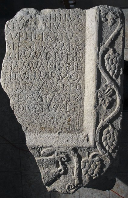 - ---] / [--- vixi]t an(nos) / XXX T[i]tinius / Severinus ses/cuplicarius(!) / ales(!) II Araba/corum et Titini/us Iamuaris(!) fili / tituli(!) memo/riae caus(a)e po/suerunt ave vi/ator et vale