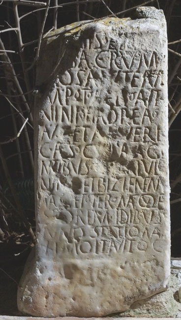 - [Nymph]is et [---]/[--?] sacrum / [pr]o salutem(!) / [I]mp(eratoris) T(iti) Aeli Ant[o]/nini Hadr<i=E>a(ni) / Aug(usti) et Au[r(eli)] Veri / Caes(aris) cura age/ntibus [--] Satur/nino et Bizienem(!) / mag(istris) et Ter(entio) Mat(erno) quae/ storem(!) Idibus / Iun(iis) Q(uinto) Statio Ma/ximo et Avito c(onsulibus)