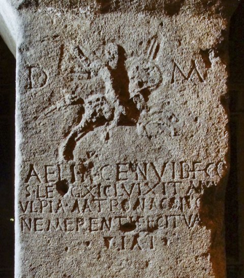- D(is) M(anibus) / Ael(i) Ingenui b(ene)f(iciarii) co(n)/s(ularis) leg(ionis) XI Cl(audiae) vixit an(nos) [---] / Ulpia Matrona co(n)iug[i be]ne merenti fecit va[le] / viator