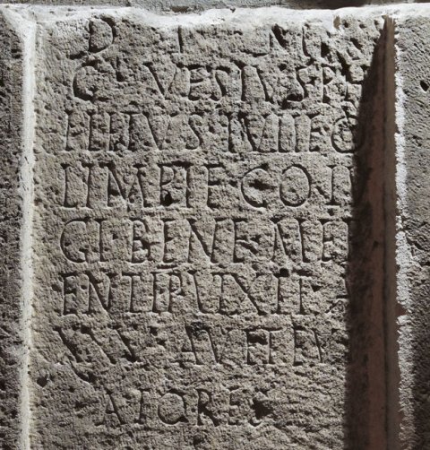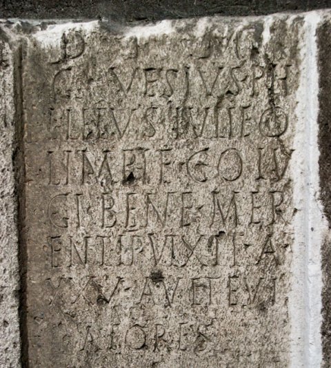 - D(is) M(anibus) / C(aius) Vesius Ph/iletus Iuli(a)e O/limpi(a)e co(n)iu/gi bene mer/enti p(osuit) vixit a(nnos) XXV avete vi/atores