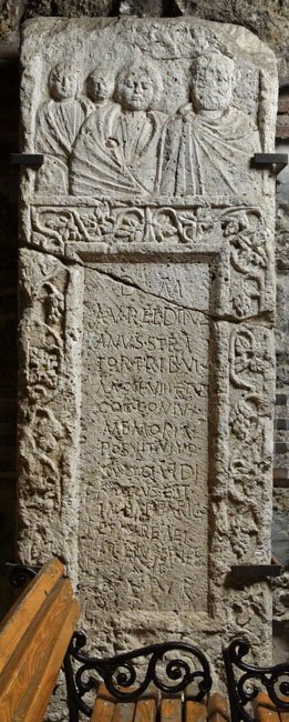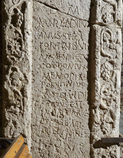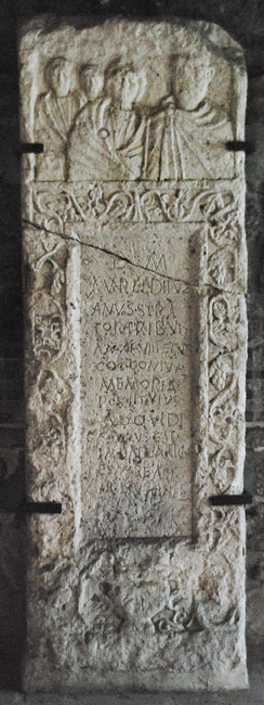 - D(is) M(anibus) / Aurel(ius) Ditus/anus stra/tor trib(uni) vix(it) / an(nos) XLVIII et Cl(audia) / Coc(ceia) coniux / memoria(m) / posuit vivo / suo qui di/[miss?]us est / in barbarico / et Aure(lia) Ael(ia) / fil(ia) eius et her(es)