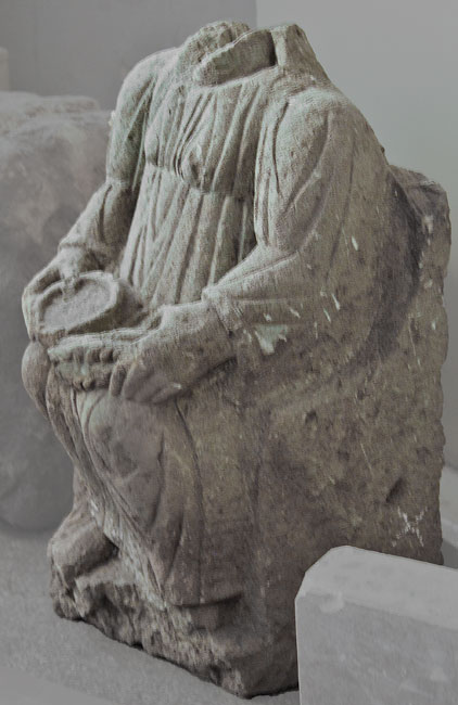 - Mythische Figur: Thronende Göttin (Ceres ?) in Chiton und Mantel, in den Händen Schale und Getreideähren.
