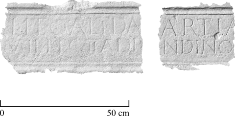 - [---]I f(ilio) eq(uiti) al(ae) I Da[rdan(orum) et ---] / [---] mil(iti) leg(ionis) II Adiu[t(ricis) // ]artia [---] / [--- Sec]undino [---?]