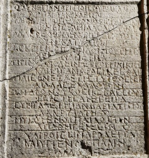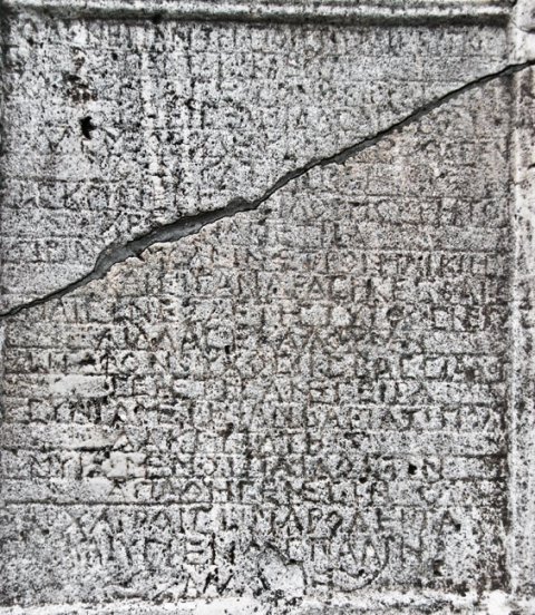 ὑπόμνημα.// οὐδὲν ἐπ’ ἀνθρώποις μύραις δ’ ὑπὸ / πάντα κυκλεῖται· / καὶ γὰρ ἐγὼ σπεῦδον θρέψαι τέκνον / καὶ εἰς ἐλπίδας ἄγεσθαι· / ἀλλ’ ἐμέο βουλὴν κρίσις ἔφθασεν / οὕνεκα τύμβῳ· / ὡς κρίσις ἐ[στὶ] φίλοι μου ῥητὸ[ν] / χρε̣[ὼ]ν ἀπέτισα, /πρίν [γε] μολεῖν μέτρον ἡλικίης / καὶ εἰς ἄνδρας ἡκέσθαι, / παῖς ὢν ἑξαετὴς τυτθὸς νεῖος, / Λιλλᾶς ἐκαλούμεν· / ᾧ τάφον οὐχ ὁσίως Βασσιανὸς / γενέτης ἀνέγειρα / σὺν γαμετῇ Ἰανβαρίᾳ τῇ πολυ/δακρυτάτῃ, / μυρόμενοι παιδὸς τὴν / ἀπαθῆ γένεσιν· /χαίροις ὦ παροδεῖτα / καὶ ὑγιένοις πάλιν / ἄλλοις. - Errichter