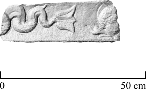 - Meerwesenfries : Zwei nach links schwimmende Meerwesen, das rechte ist ein Delphin