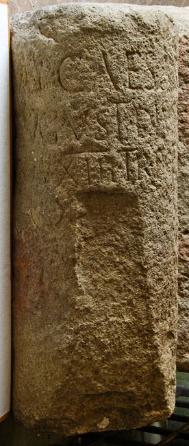 - Imp(erator) Caesar / August(us) divi f(ilius) / co(n)s(ul) XIII tr(ibunicia) pot(estate) / X[XII] / X[---]IIII