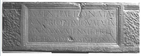 - Iuventiae Donatae / uxor(i) optim(ae) quae vix(it) / ann(is) XXV mensib(us) trib(us) / Titius Iulius Iulianus