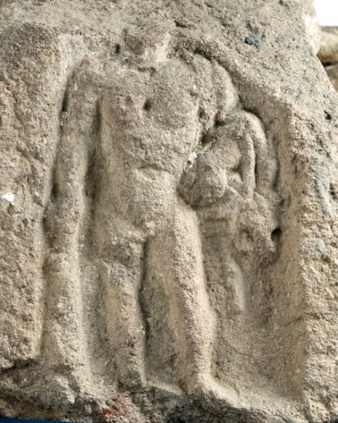 - oben abgebr., stark bestoßen, Relief tlw. abgeschlagen