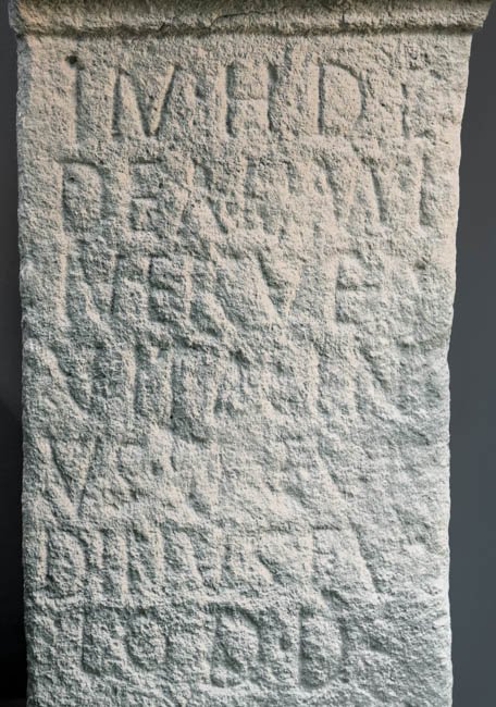 - In h(onorem) d(omus) d(ivinae) / deae Mi/nerv(a)e / Vitalini/us Secun/dinus ful/lo d(onum) d(edit)
