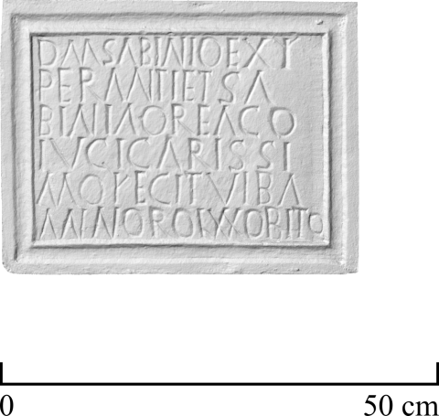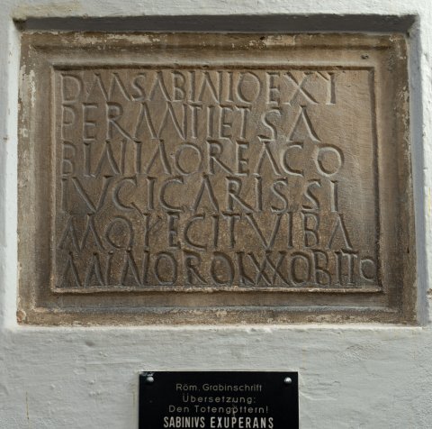 - D(is) M(anibus) Sabinio Exu/peranti Sa/binia Orea co(n)/iugi carissi/mo fecit viba (!) / annoro(m) (!) LXX obito