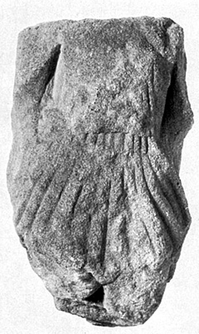 - Mythische Figur (?): mittlerer Teil einer stehenden bekleideten Figur (Vulcanus mit Exomis ?).