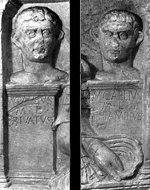 M(arcus) Caelius M(arci) l(ibertus) Privatus // M(arcus) Caelius M(arci) l(ibertus) Thiaminus // M(arco) Caelio T(iti) f(ilio) Lem(onia) Bon(onia) // |(centurioni) leg(ionis) XIIX ann(orum) LIII s(emissis) / [ce]cidit bello Variano ossa / [i]nferre licebit P(ublius) Caelius T(iti) <f=E>(ilius) / Lem(onia) frater fecit - Funktion