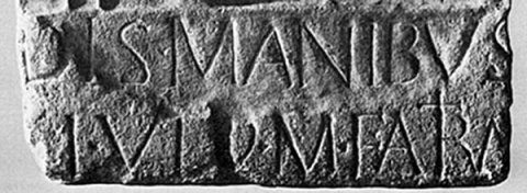 - D(is) [M(anibus)] s(acrum) / M(arcus) Ulp(ius?) M(arci) f(ilius) Atria/[---