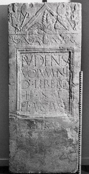 - Pudens / Volumni / |(centurionis) libert(us) / h(ic) s(itus) e(st) / et Auctus // lib(ertus)