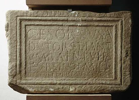 - Et Censorin[o fi]l(io) an(norum) XXX // Ce(n)sorinus A/diutoris et Iant/umara Finiti vi(vi) f(ecerunt) s(ibi) / et Ursino f(ilio) militi / in co(ho)rte Breucor(um) an(n)o(rum) XXV