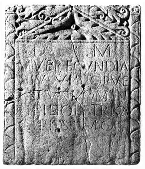 - D(is) M(anibus) / M(arcus) Verecundia/nius Victor Ve/recundo Men/[-]i filio patri ca/rissimo
