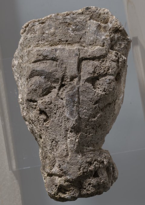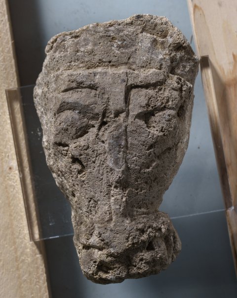 - Frontal gesehener Pferdekopf, vermutlich von der Grabstele eines Reitersoldaten.